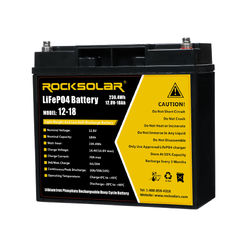 ROCKSOLAR 12V 18Ah Deep Cycle Lithium Battery (LIFEPO4)