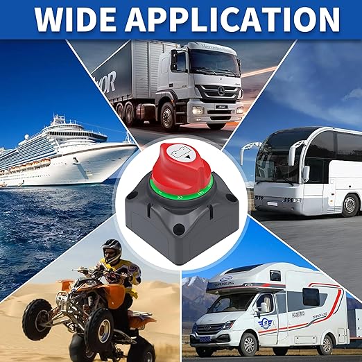 WIDE APPLICATION: This battery shut off switch is suitable for DC 12-48V system to isolate and secure the electrical system, can stand alone or be locked together with other switches. It is widely used for Car, Marine, Boat, RV, Camper, Travel Trailer, Truck, ATV, UTV, Battery banks and other electrical equipment's switch