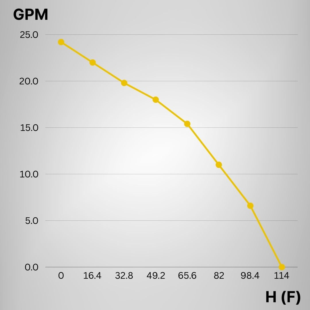 - Maximum Flow Rate: Delivers up to 24.2GPM at minimal head, providing excellent water flow.