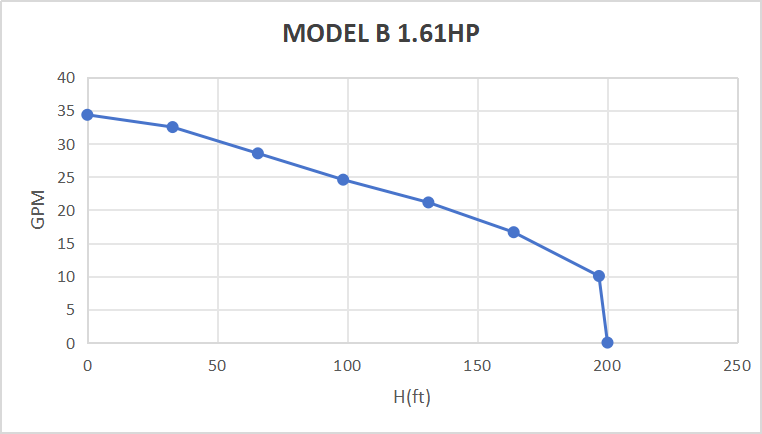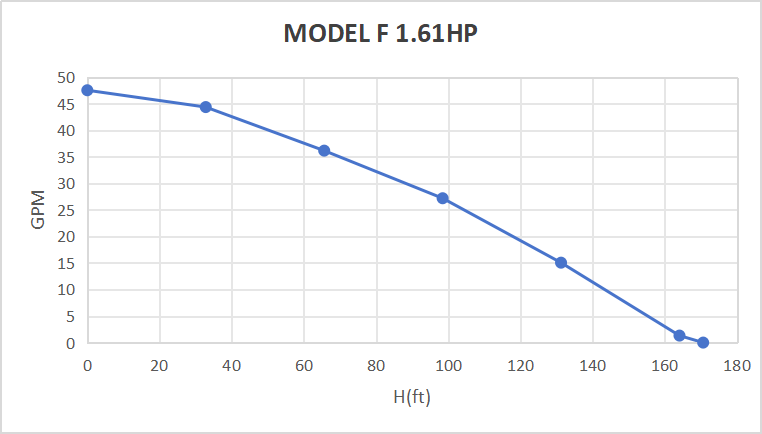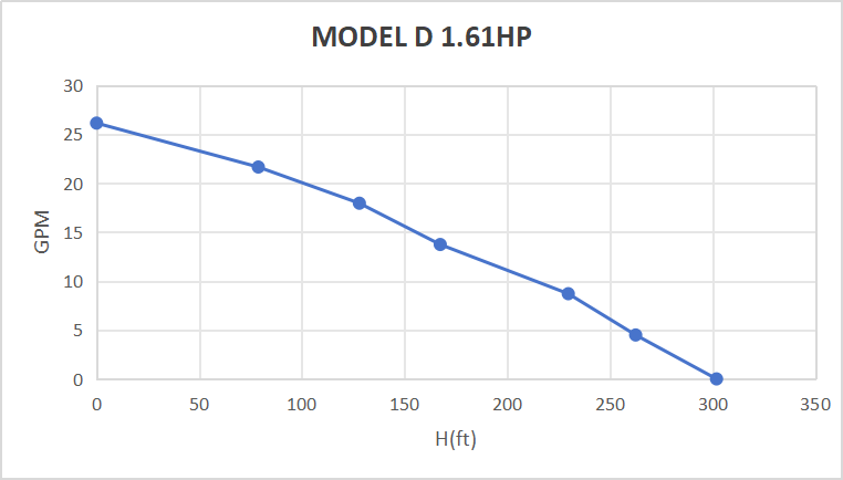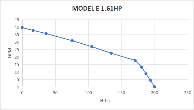 - Performance Metrics: Flow rates from 17.42 GPM at minimal head height to zero at the maximum depth of 391.2 feet.