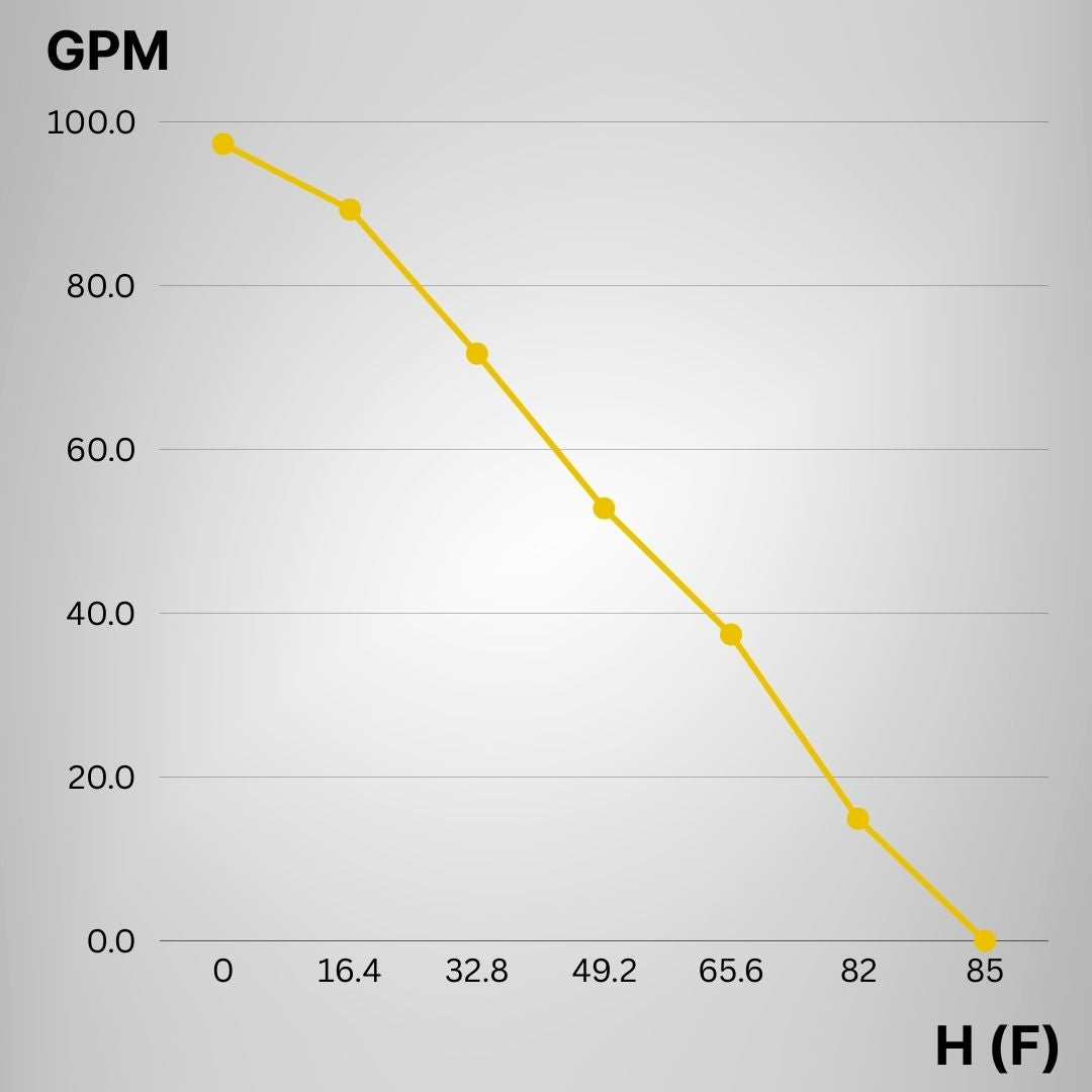 - Maximum Flow Rate: Achieves a flow rate of up to 97.3GPM at minimal head for excellent water delivery.