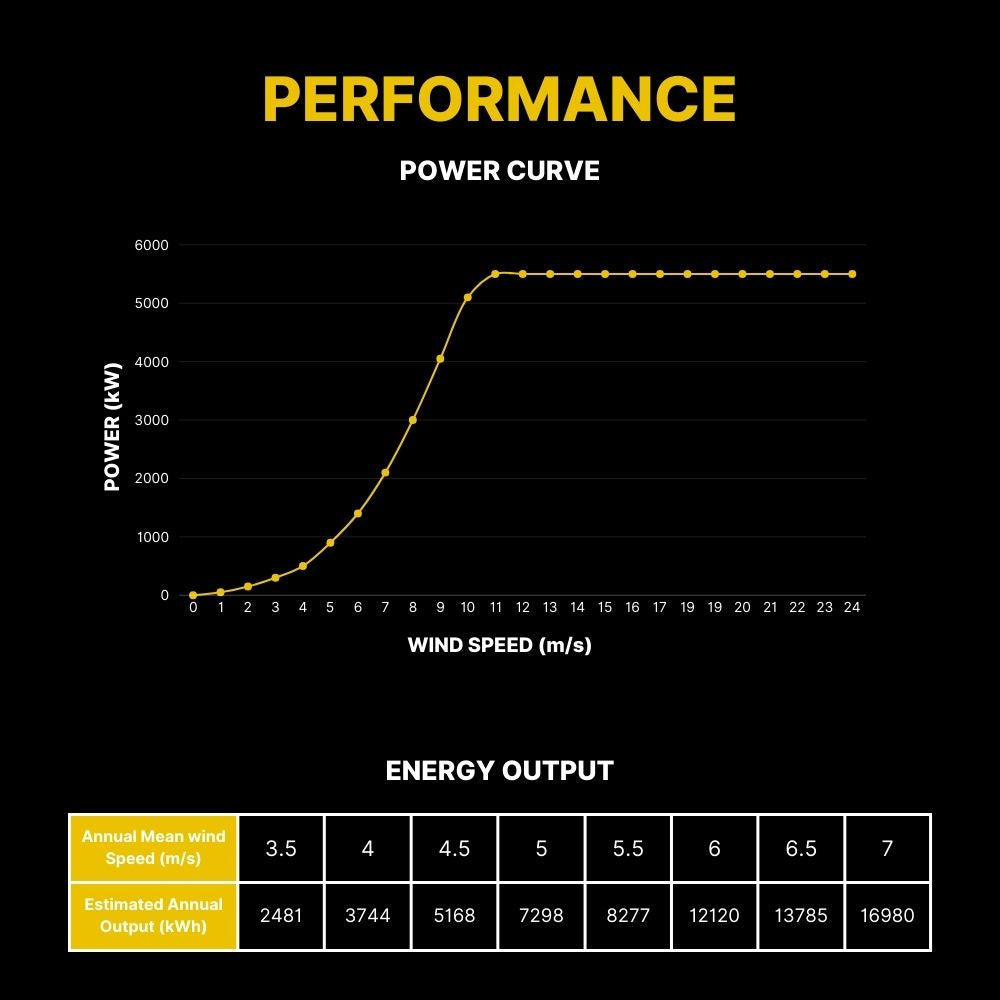 - Starts generating power at a low wind speed of 2.5m/s, making it efficient in areas with varying wind conditions.
